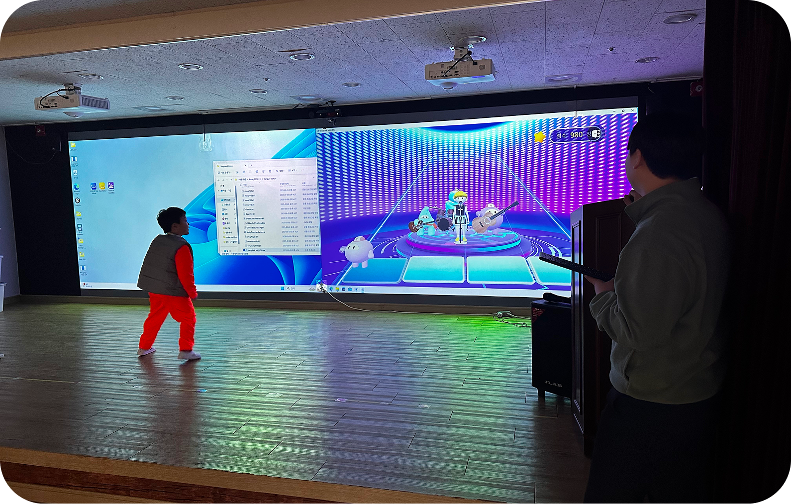 또한 4K 해상도와 6000안시 이상의 고급 프로젝터, 터치센서를 활용한